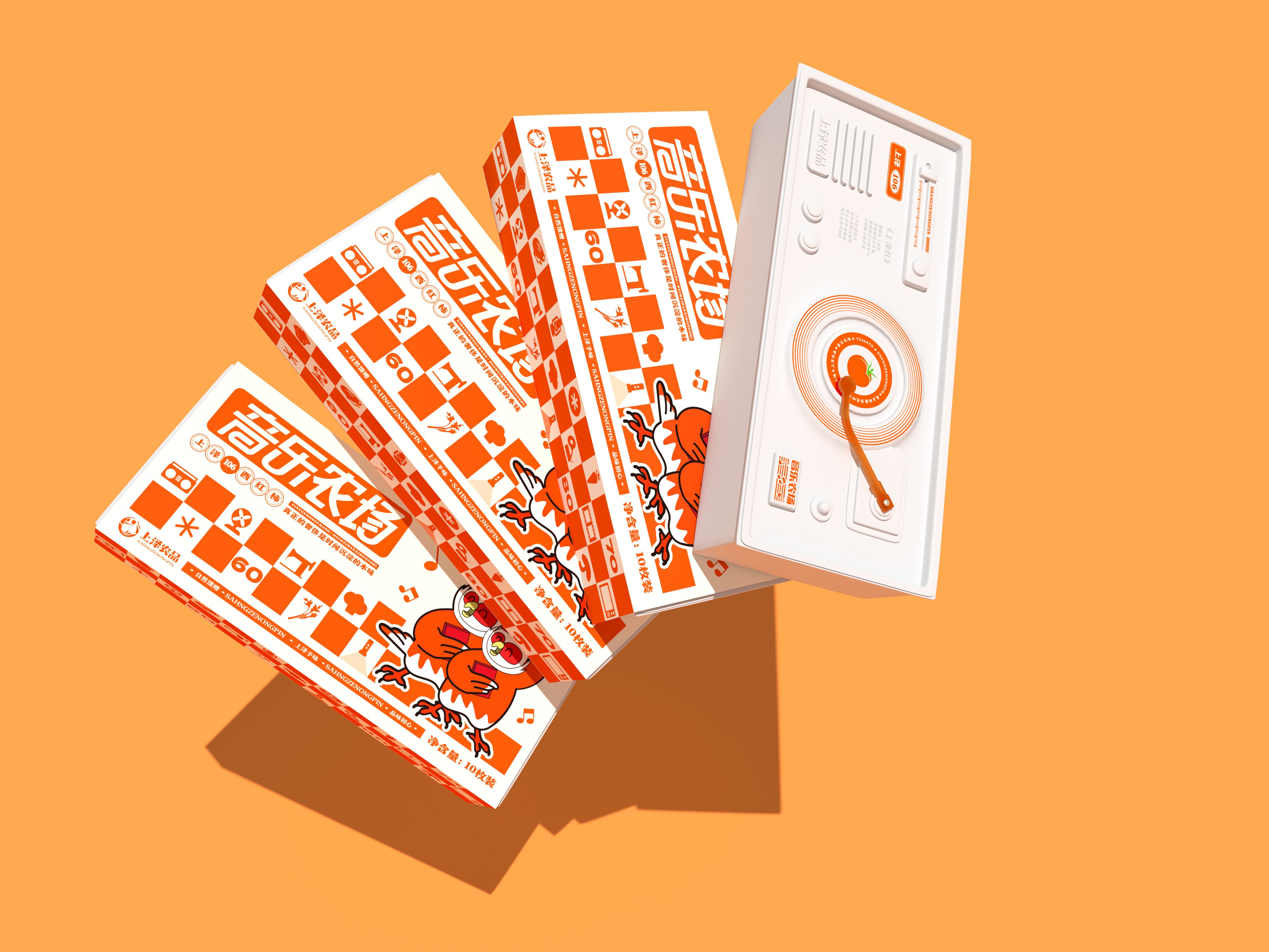 这款以“音乐农场”为主题的礼盒,创新地造型成20世纪60年代常见的复古卡带播放器。打开时,它会播放根据经典歌曲《东方红》改编的品牌颂歌,瞬间引发强烈的情感共鸣。旋钮和频率拨号等细节,配上IP角色棕耳雉和60-80年代典型元素的插图,展示复古魅力并提供沉浸式体验。通过巧妙地将自然风味与对时代的怀旧结合,礼盒将农产品提升为集体记忆的有形容器。